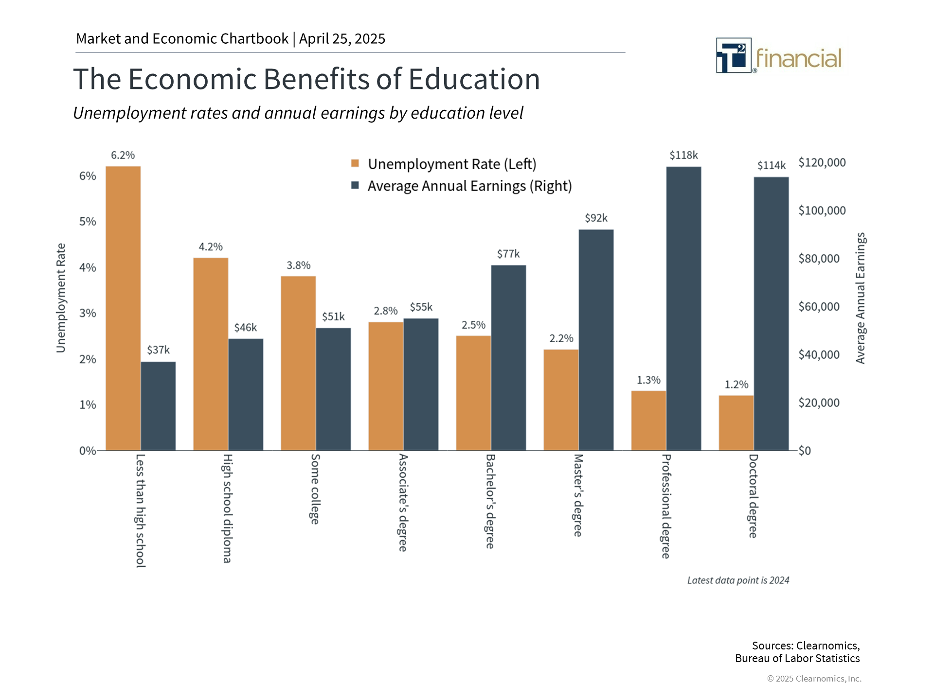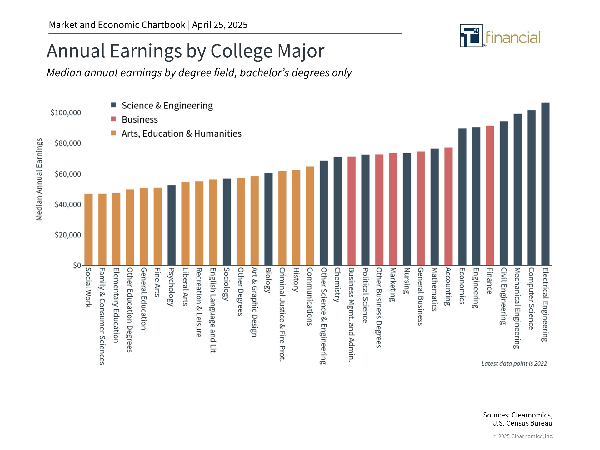 While these numbers are impressive, they don't tell the whole story since results can vary greatly based on what subject you study, which school you attend, and how well you use your education to build career opportunities. When looking at the financial return on education, your choice of major plays a crucial role. The chart shows median yearly earnings for professionals between ages 25 and 64 with bachelor's degrees. STEM fields (Science, Technology, Engineering, and Mathematics) consistently show the strongest returns, with some fields showing median yearly earnings over $100,000. Engineering and computer science majors lead in earning potential, while healthcare and business fields also show strong returns. On the other hand, fields in the humanities and education typically offer lower median earnings. Of course, higher education provides many benefits beyond just money, and graduates can take many different career paths with these degrees. These numbers don't make these fields less important but highlight the need for careful financial planning when pursuing these paths. Alternative education options are worth considering too. Technical certifications, two-year associate degrees, and apprenticeship programs can offer focused skill development at lower costs, sometimes with job outcomes similar to or better than some four-year degrees. These options may be practical alternatives for some students or complement traditional degree programs. Education savings tools and strategies provide planning options Ideally, planning how to pay for college happens long before you know what kind of education your child, grandchild, or other family member will want. But even for those close to college acceptance, using the right savings tools and strategies can help. 529 plans are the foundation of most education funding strategies. These are special accounts that offer tax-free growth and withdrawals when used for qualified education expenses. Recent law changes have made them more flexible, allowing limited transfers to retirement accounts and use for apprenticeship programs and student loan repayments. Many states also offer tax deductions or credits for contributions, making them more attractive. UGMA/UTMA accounts (which stand for "Uniform Gifts/Transfers to Minors Act") provide alternatives that allow more flexibility in how the money can eventually be used. While they don't have the tax advantages of 529 plans, these accounts allow greater flexibility in how assets are used while removing substantial assets from taxable estates (meaning potential tax savings for wealthy families). For families with enough money, direct tuition payments to educational institutions can offer a powerful exception to gift tax limits. This is because payments made directly to schools for tuition expenses are exempt from gift taxes, regardless of the amount. This special provision in the tax code allows grandparents or other family members to contribute significantly to a loved one's education without using any portion of their lifetime gift and estate tax exemption or annual gift tax exclusion. Other approaches, such as specialized trust structures, can help too. For instance, education trusts give donors more control over how money is used for college costs. You can set up rules about grades, choice of schools, or even extend benefits to future generations. These trusts can also help reduce taxes while supporting your family's education values. It's important to connect any college savings plan with your overall financial plan. Tax rules for education savings change over time, so staying up-to-date is critical. Working with a financial advisor can help you make the best choices for your family's education goals in the current environment. The bottom line? College planning requires balancing today's costs against tomorrow's benefits. By starting early and choosing the right savings tools and strategies, families can make choices that support future educational and financial success. | ||